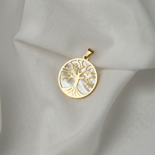 Przywieszka złota okrągła drzewko szczęścia na masie perłowej PZR342