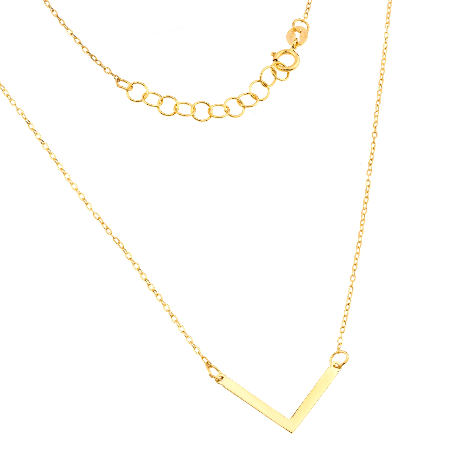Wyrób jubilerski w formie naszyjnika z gładką literą V.