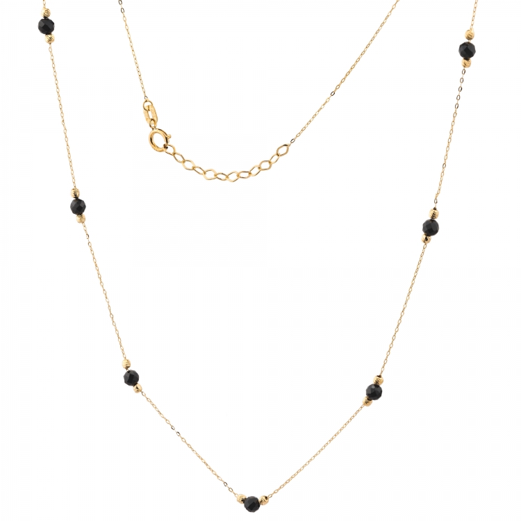 Złoty naszyjnik celebrytka czarne koraliki z diamentowanymi kuleczkami CL922