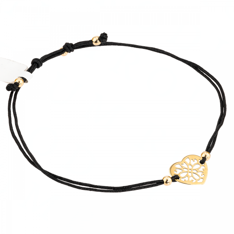 Bransoleta Złota Na Sznurku - Serce ażurowe
