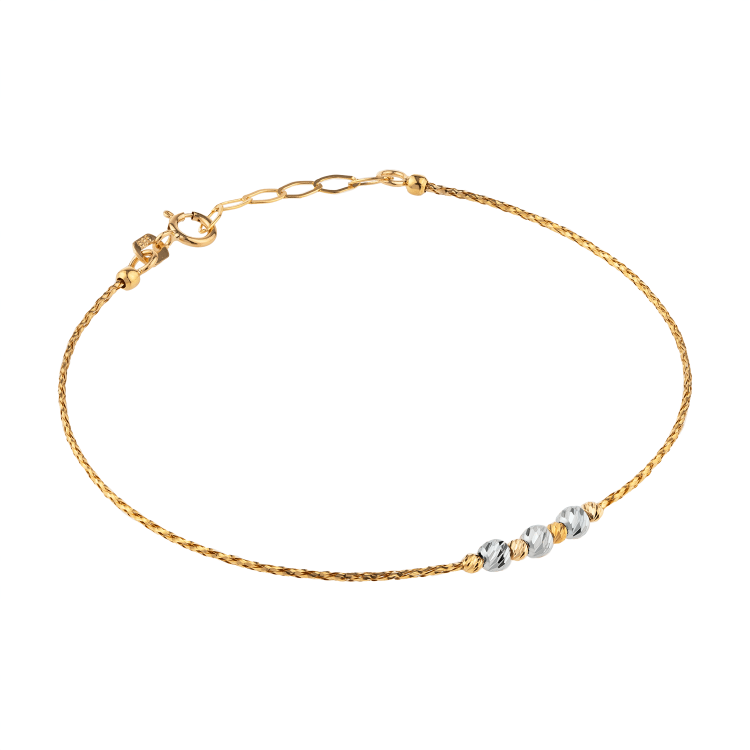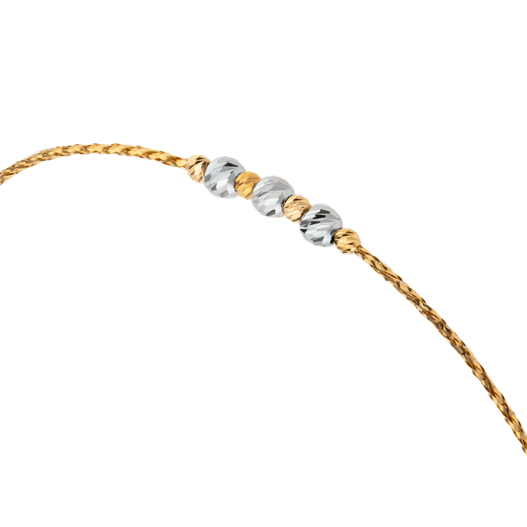 Bransoleta złota ozdobna półsztywna z diamentowanymi kuleczkami dwukolorowa BOZ215