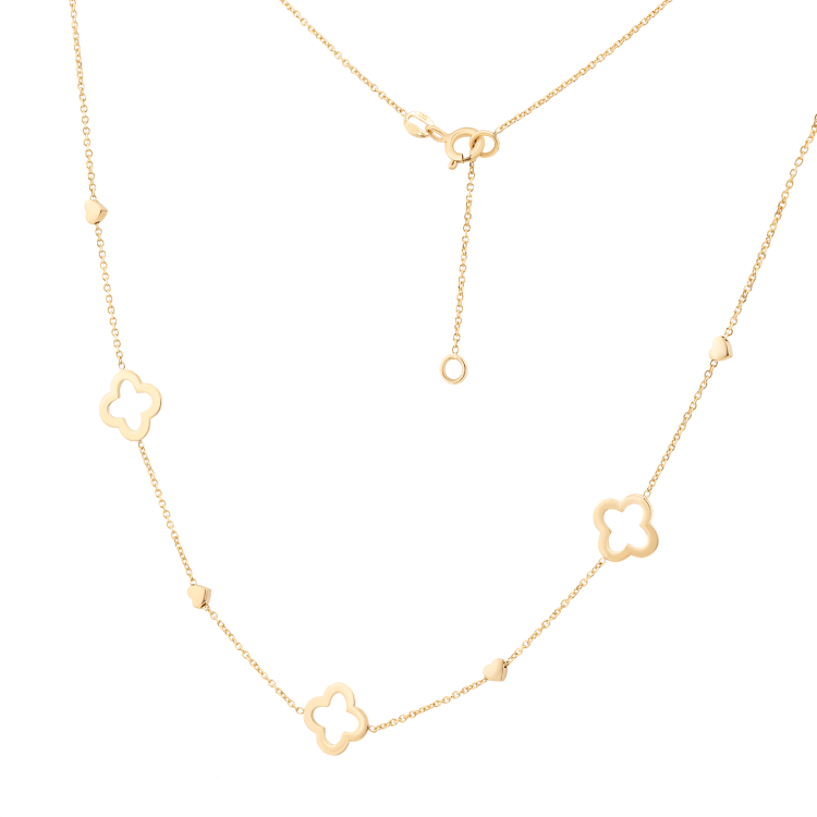 Złoty naszyjnik celebrytka kontury koniczyny naprzemiennie z serduszkami CL1096