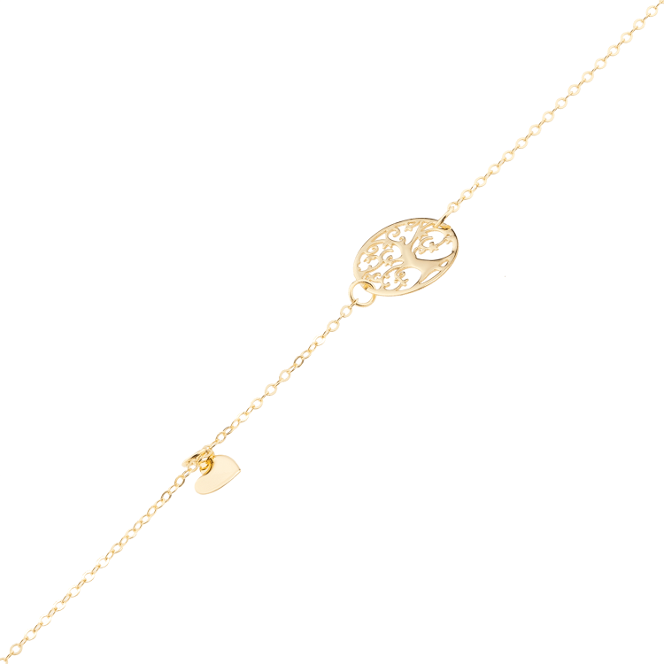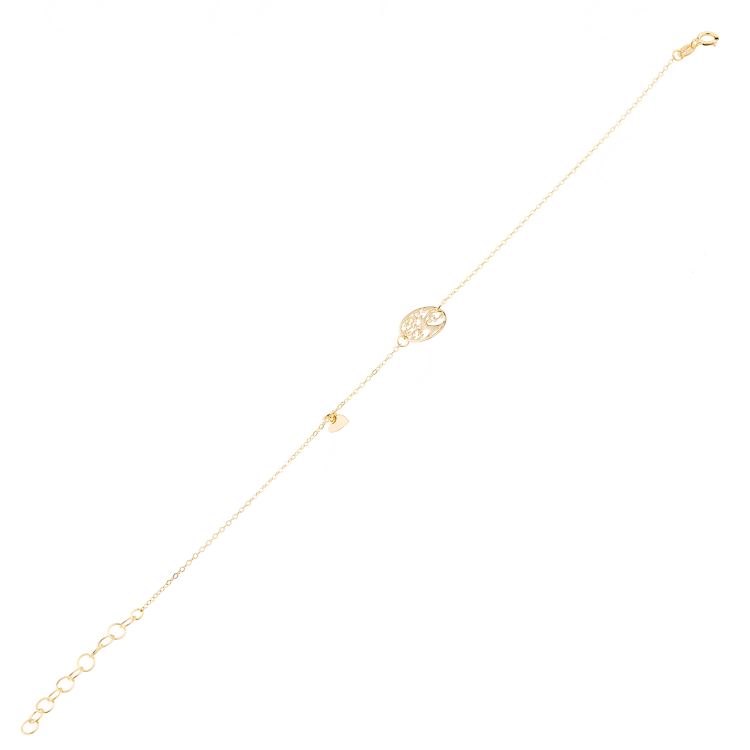 Bransoleta złota celebrytkowa ażurowe drzewko w kółku i ruchome serduszko BCL194