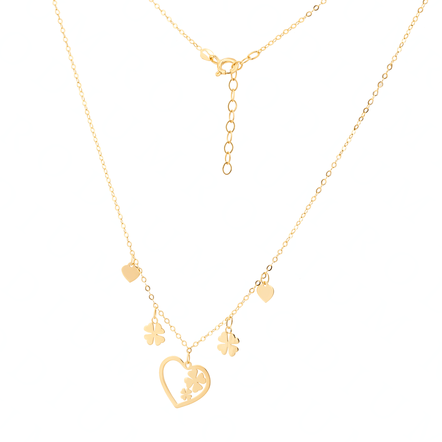 Naszyjnik złoty celebrytka koniczynki z sercami CL1113