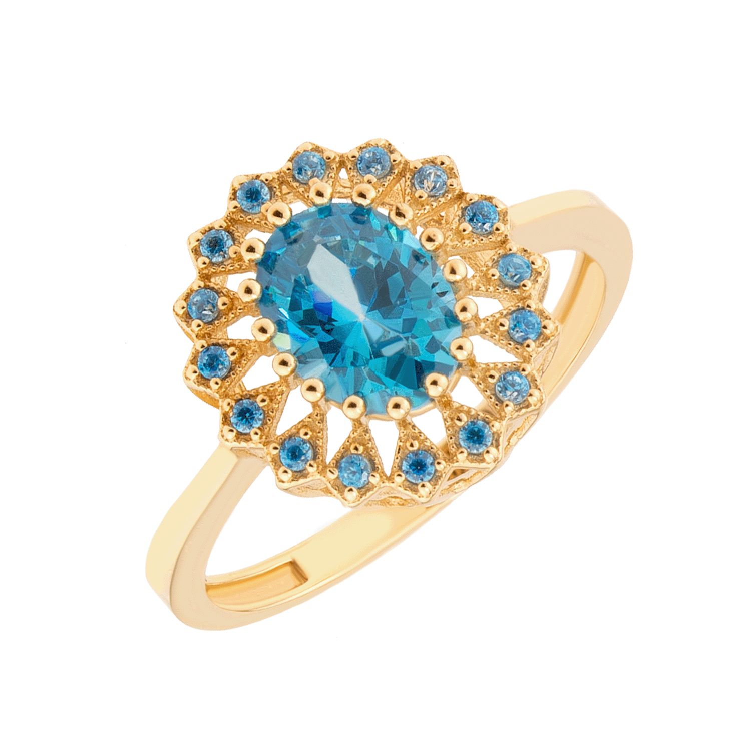 Złoty Pierścionek - Markiza ażurowa z błękitnymi kamieniami