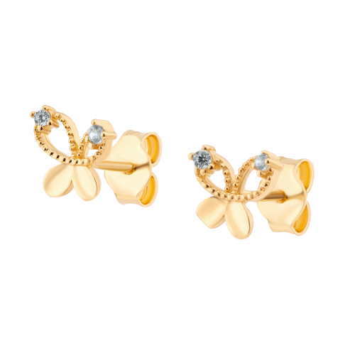 Kolczyki złote na sztyft motyl z cyrkoniami KNS719