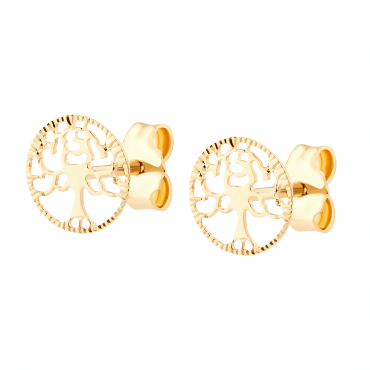 Kolczyki złote drzewko szczęścia w diamentowanym kółku KNS751