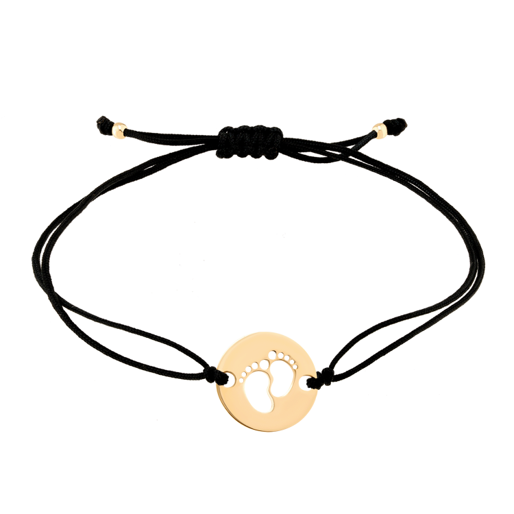 Bransoleta złota na sznurku stópki w kółku BNS100
