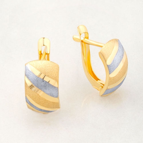 Kolczyki złote zatrzaskowe laserówki dwukolorowe diamentowane KZ546