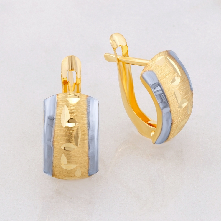 Kolczyki złote laserówki dwukolorowe diamentowane KZ541