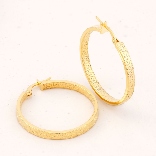 Kolczyki złote koła płaskie z greckim wzorem KKL294