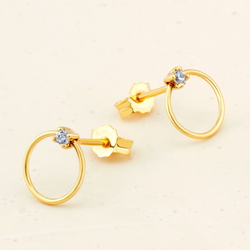 Wyrób jubilerski z zapięciem typu sztyft kontury kółka z cyrkonią.