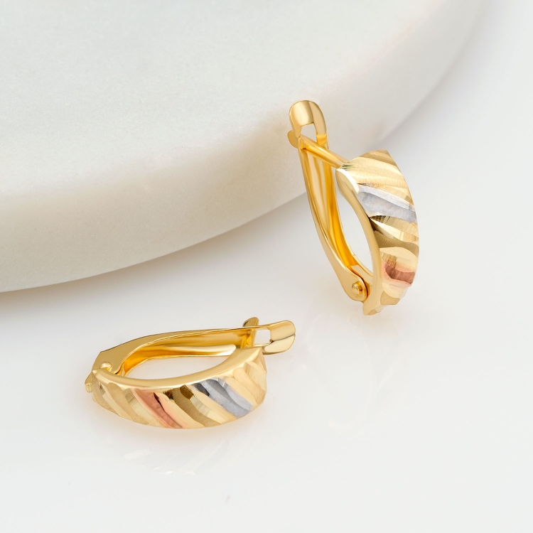 Kolczyki złote zatrzaskowe laserówki trikolor diamentowane KZ564