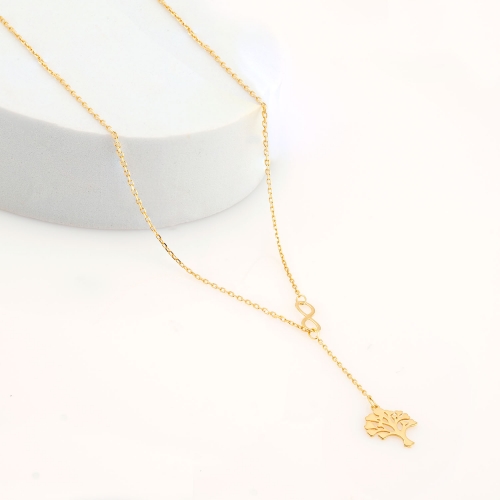 Złoty naszyjnik celebrytka krawatka z nieskończonością i drzewkiem szczęścia CLK1282