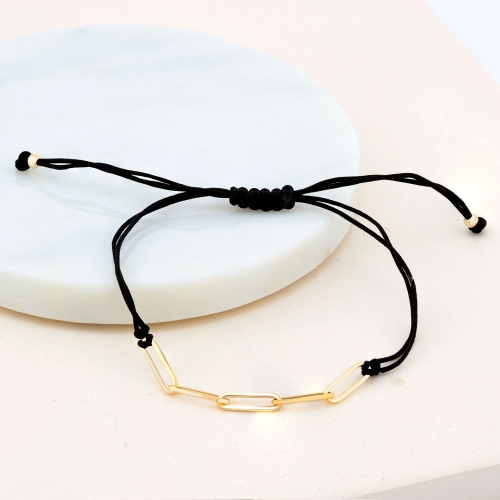 Bransoleta złota na sznurku owalne ogniwa typu spinacz BNS130
