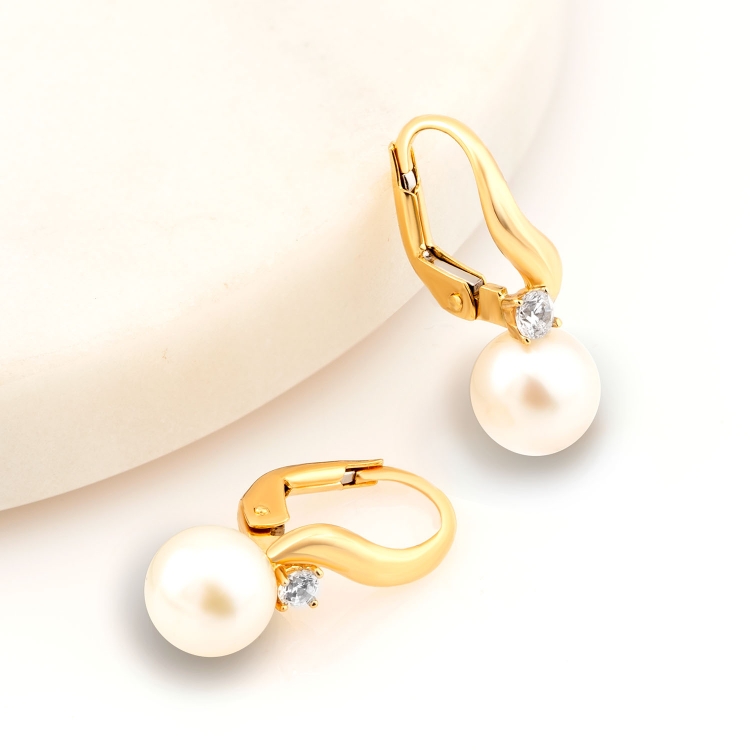 Kolczyki złote ozdobne z perłą i cyrkonią KW691