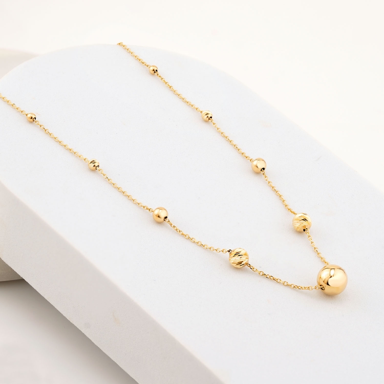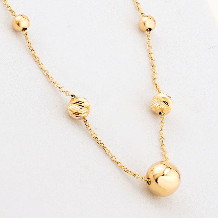 Złoty naszyjnik celebrytka gładkie i diamentowane kulki różnej wielkości CL1307
