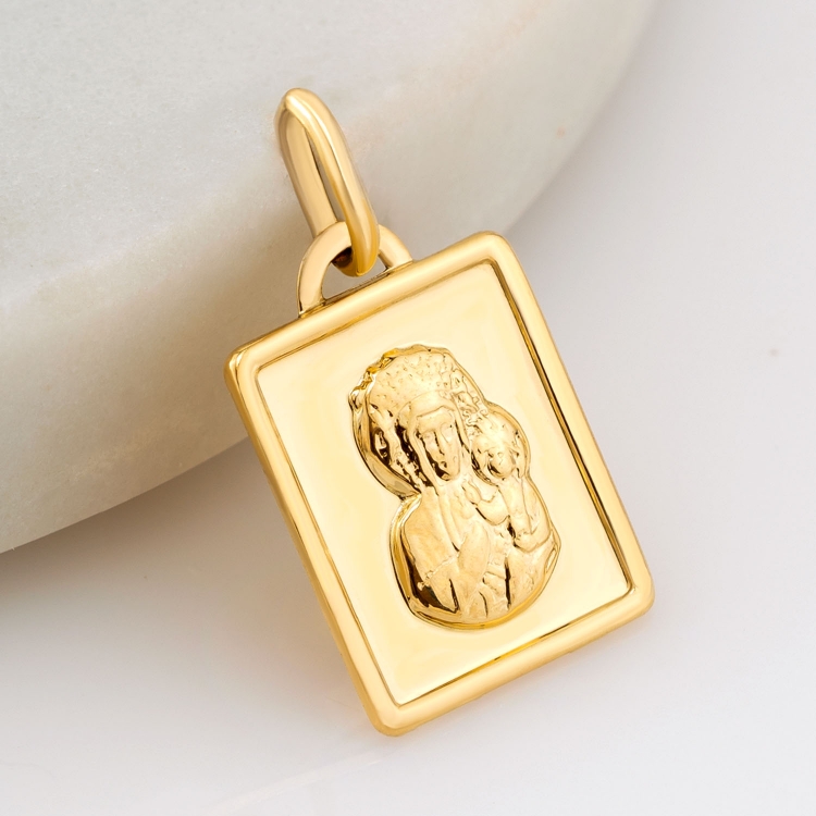 Medalik złoty Matka Boska Częstochowska prostokąt gładki DEM367