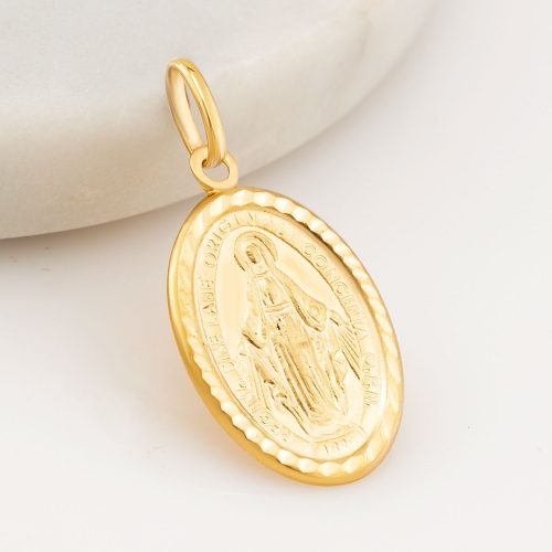 Medalik złoty cudowny z Matką Bożą diamentowany DEM370