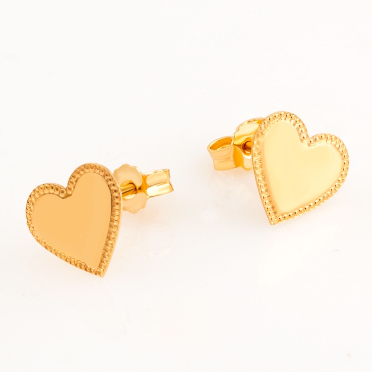 Kolczyki złote gładkie serca z diamentowanym obrzeżem KNS1047