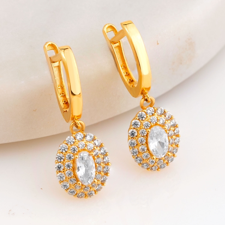 Kolczyki złote ozdobne markiza z cyrkoniami KW826