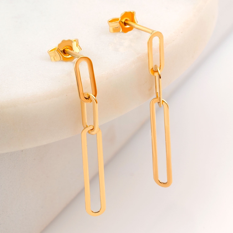 Kolczyki złote owalne gładkie ogniwa typu spinacz KW864