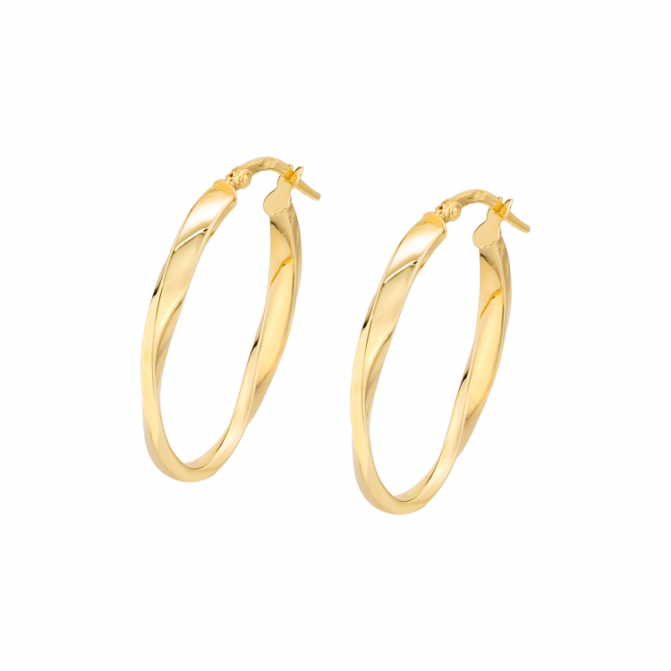 Kolczyki złote koła owalne ozdobnie skręcone KKL075