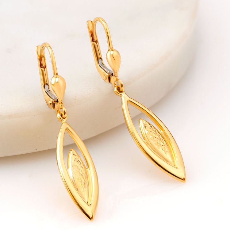 Kolczyki złote łezki z diamentowanym środkiem KW892