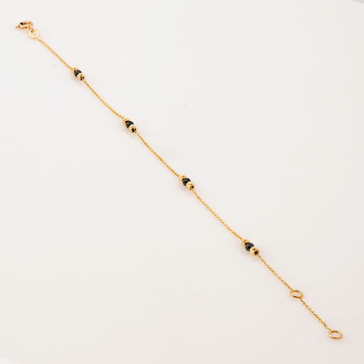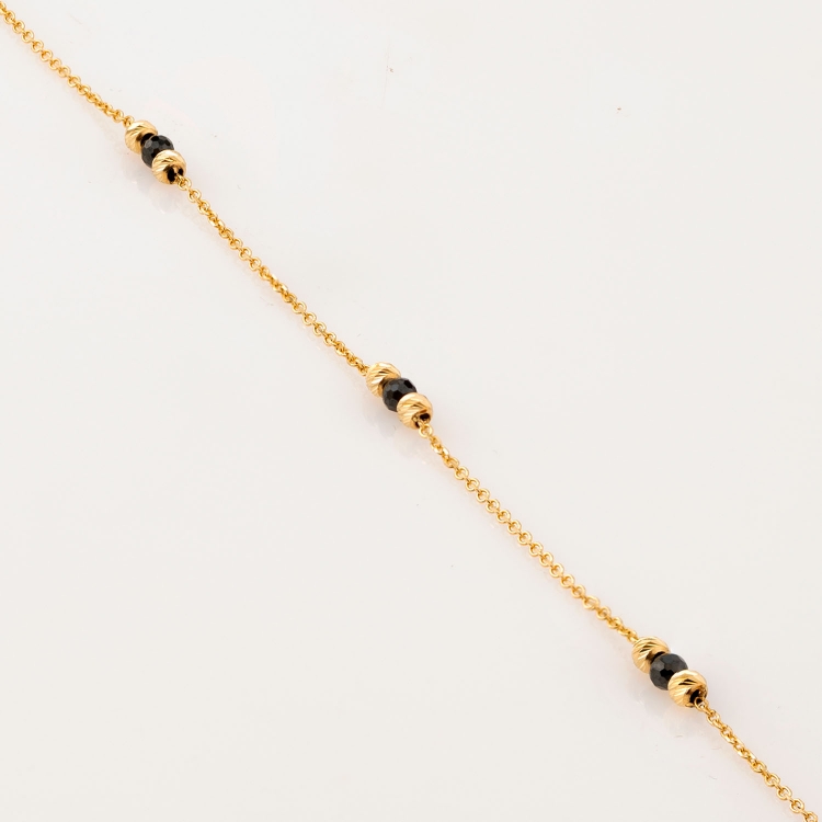 Bransoletka złota ozdobna z diamentowanymi kulkami i czarnymi koralikami BCL410