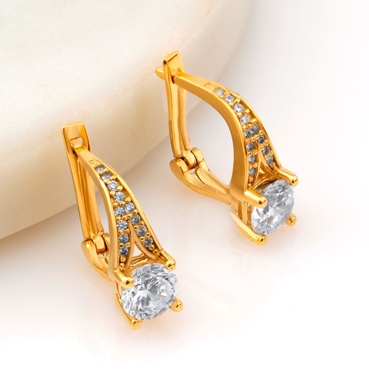 Kolczyki złote ozdobne z cyrkoniami KZ727