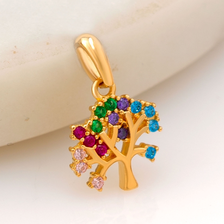 Przywieszka złota drzewko z kolorowymi kamieniami PZR1330