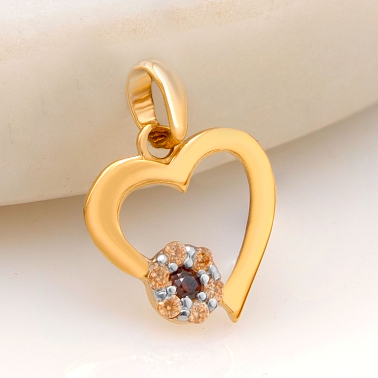 Przywieszka złota kontur serca z kwiatuszkiem z cyrkoniami PZS1358