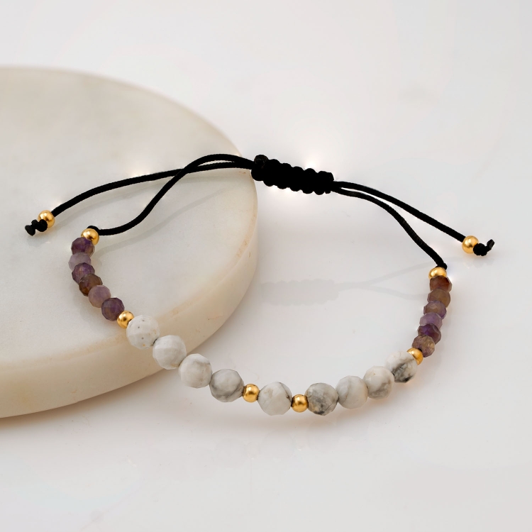 Bransoleta na sznurku złote kulki z kolorowymi koralikami BNS247