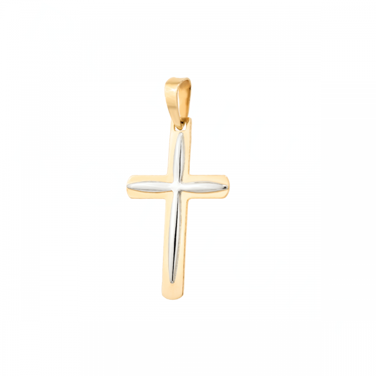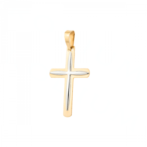 Hurtownia jubilerska Rodium Słapiński oferuje: Przywieszka Złota - Krzyż z żółto białego złota próby 585 - 14 karat.