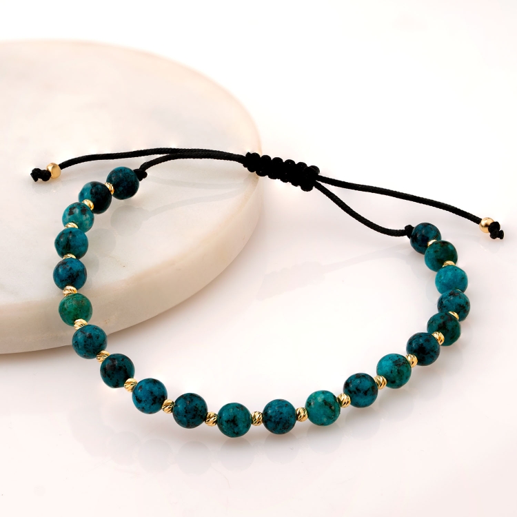 Bransoleta złota na sznurku diamentowane kulki z kolorowymi koralikami BNS271
