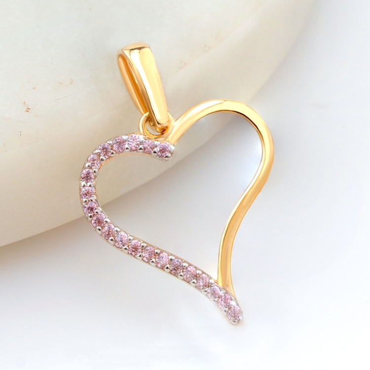 Przywieszka złota kontury serca z różowymi kamieniami PZS1382