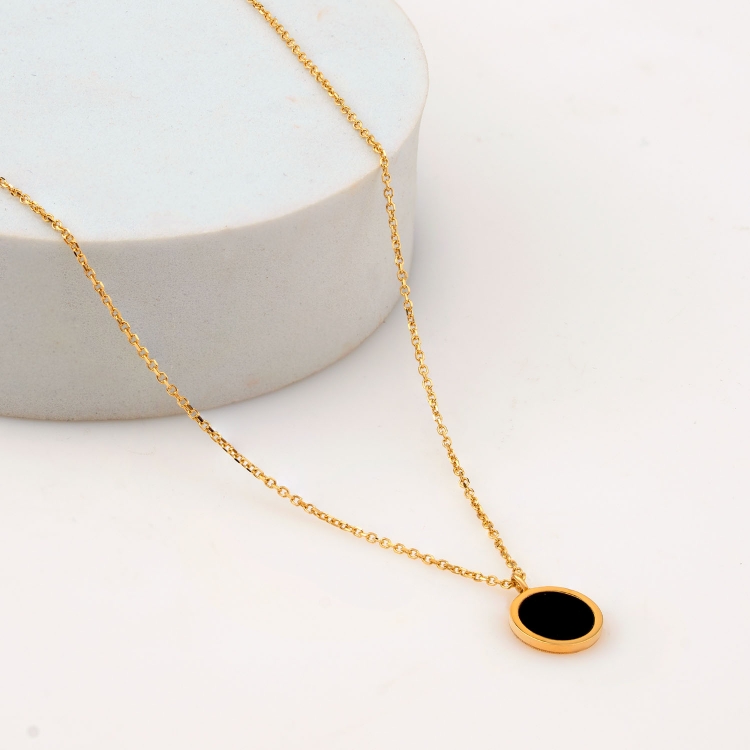 Naszyjnik złoty celebrytka okrągła z czarną emalią CL1444