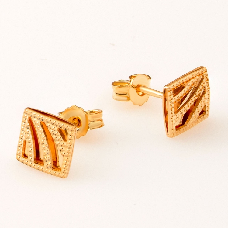 Kolczyki złote przestrzenne diamentowane kwadraty KNS1229
