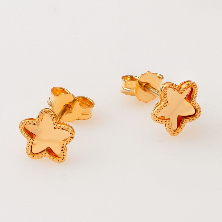 Kolczyki złote gładkie gwiazdki obrzeże diamentowane KNS1227