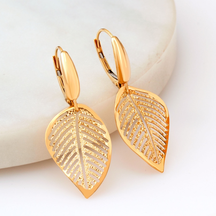 Kolczyki złote liście diamentowane KW982