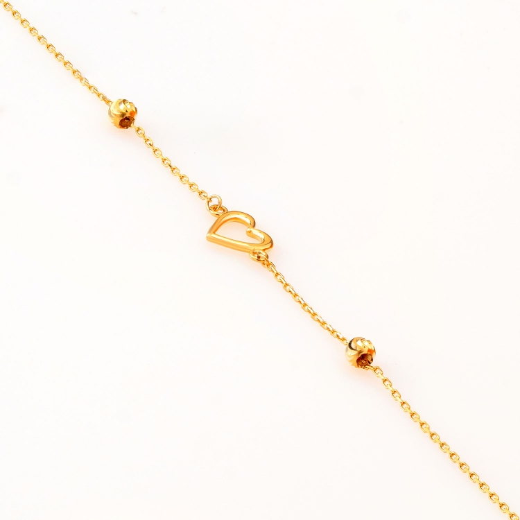 Bransoleta złota celebrytkowa z serduszkiem i diamentowanymi kulkami BCL458