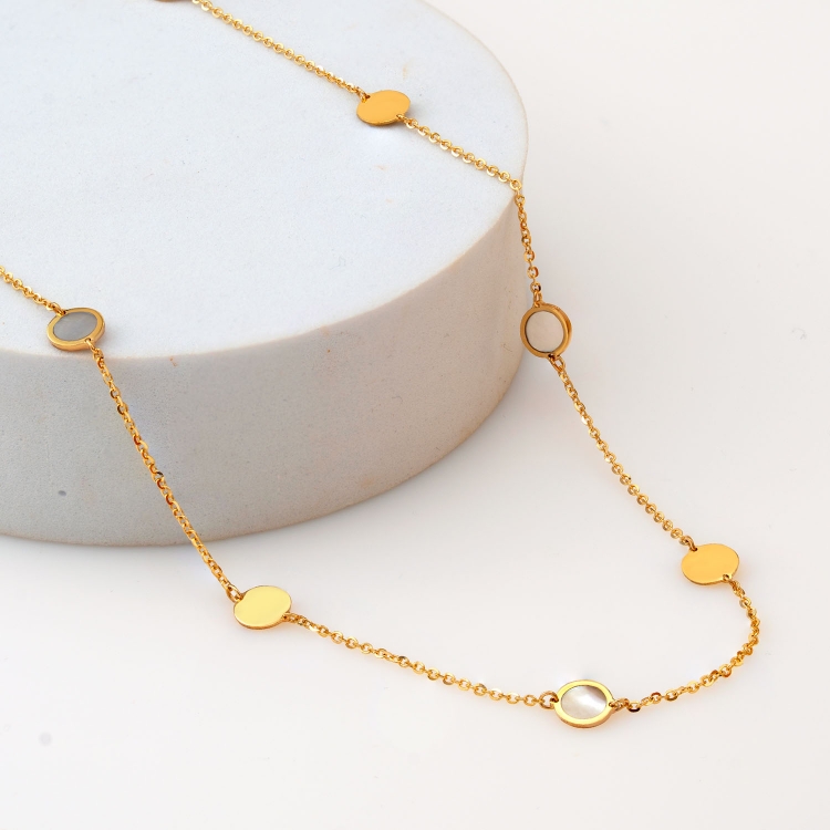 Naszyjnik złoty celebrytka ozdobna okrągłe blaszki z masą perłową CL1451