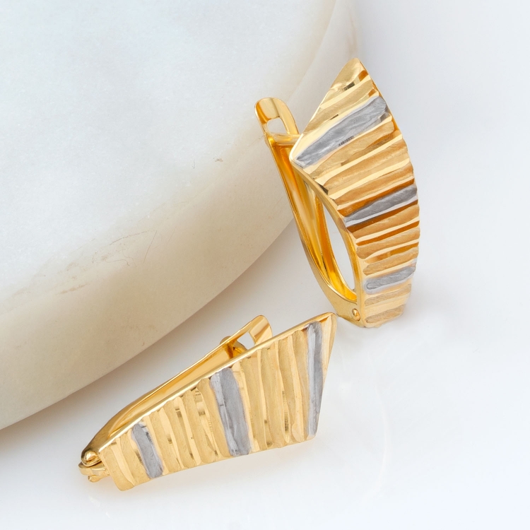 Kolczyki złote laserówki diamentowane dwukolorowe KZ784