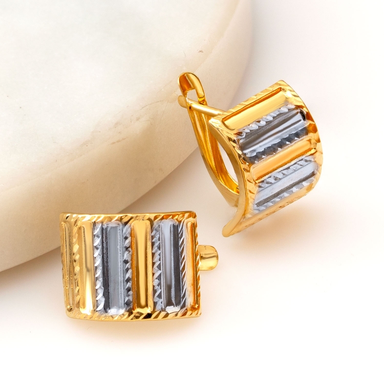 Kolczyki złote laserówki diamentowane dwukolorowe KZ788