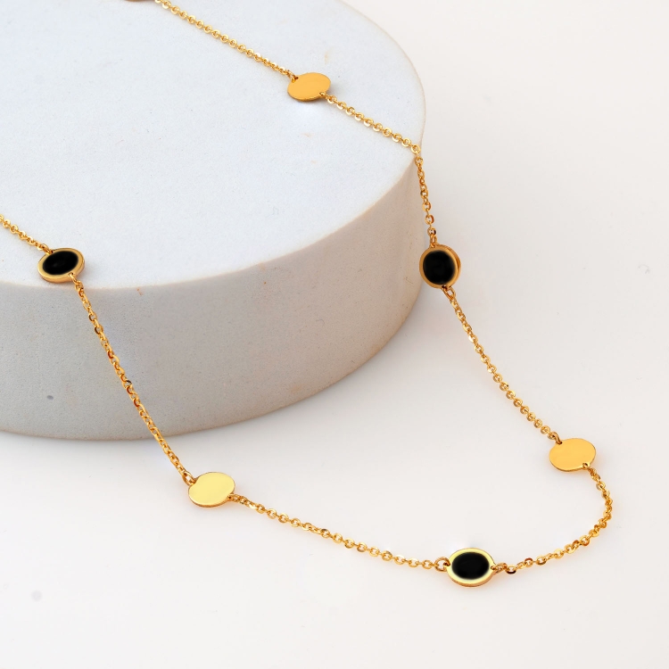 Naszyjnik złoty celebrytka ozdobna okrągłe blaszki z czarną emalią CL1470