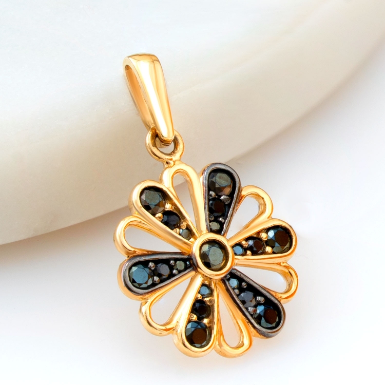 Przywieszka złota kwiatek z czarnymi kamieniami PZR1419