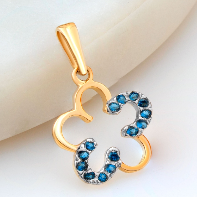 Przywieszka złota kontury kwiatka z niebieskimi kamieniami PZR1421