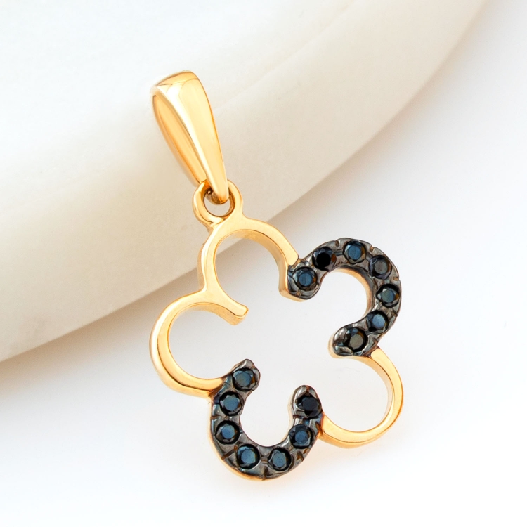 Przywieszka złota kontury kwiatka z czarnymi kamieniami PZR1422