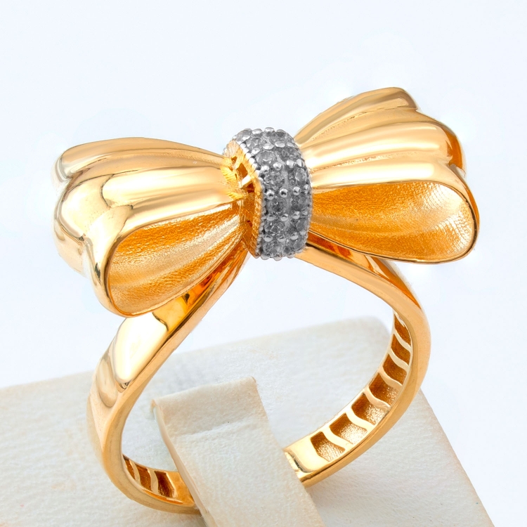 Pierścionek złoty ozdobny kokarda z cyrkoniami PIR1582
