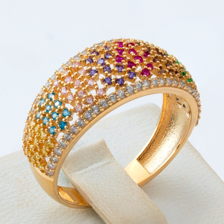 Pierścionek złoty z kolorowymi kamieniami PIR1630